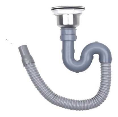 kit sifon lavaplato moderno + cesta fregadero acero inox
